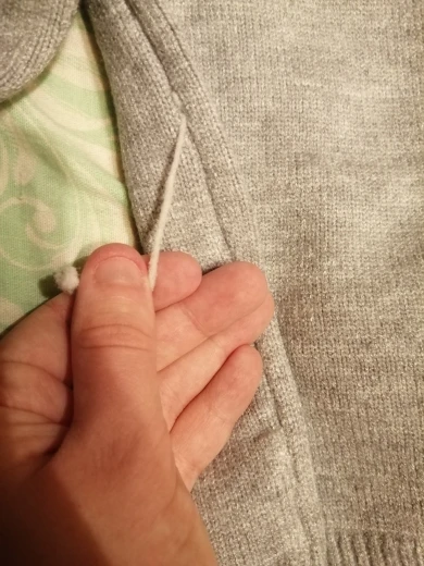 Внутри нитки и пуговицы чёрные надо перешить снаружи очень красивый уютный брала по отзывам размер подошёл но можно было больше