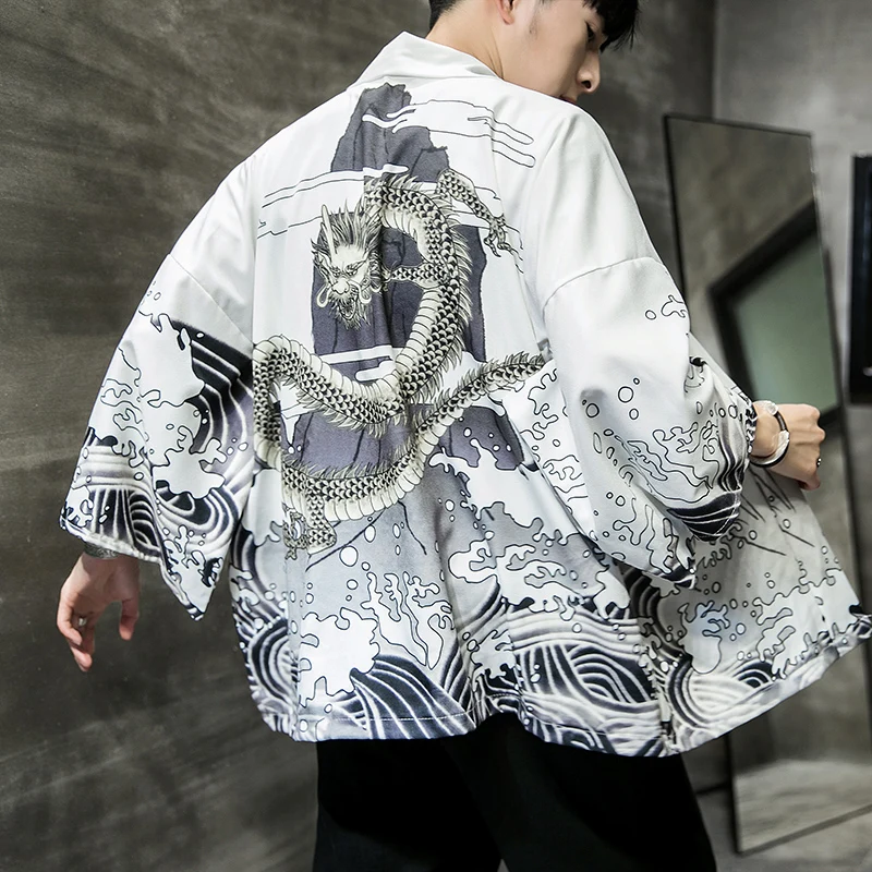 Новая мужская уличная одежда в японском стиле с принтом гейши куртки типа кимоно мужской летний солнцезащитный пляжный тонкий и дышащий кардиган пальто