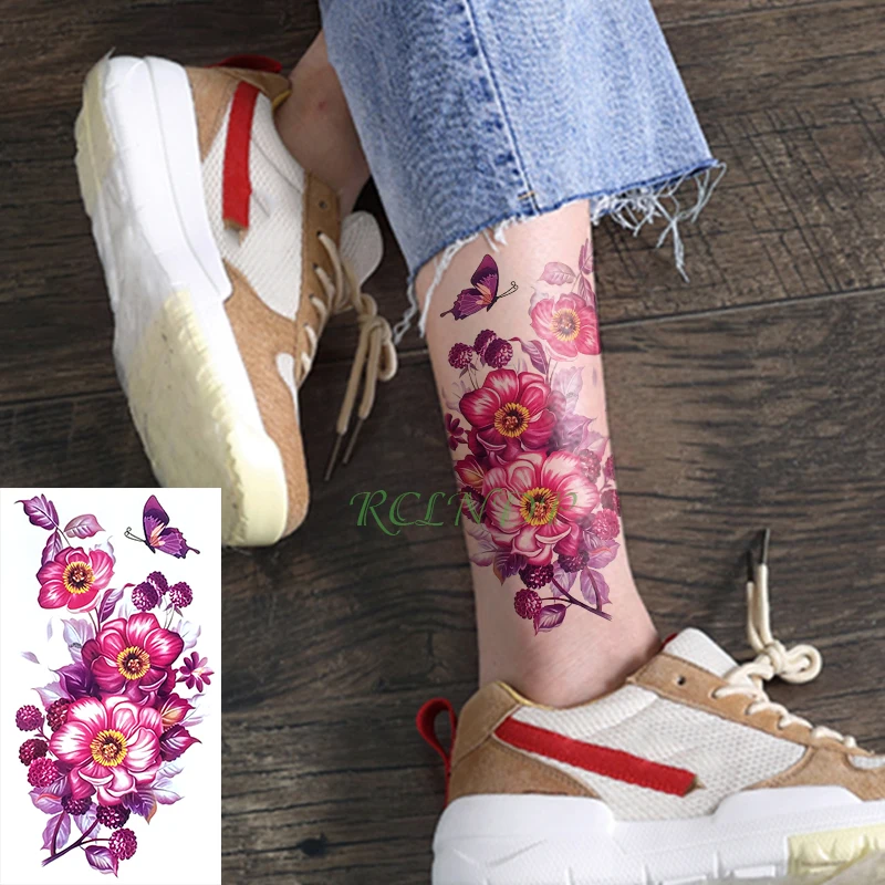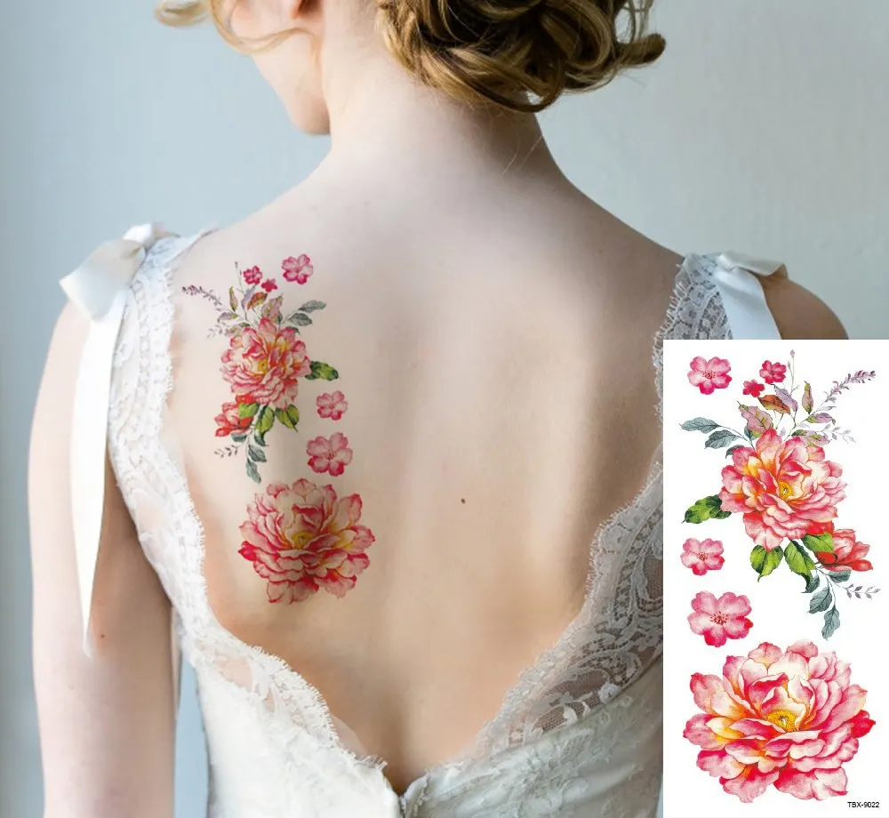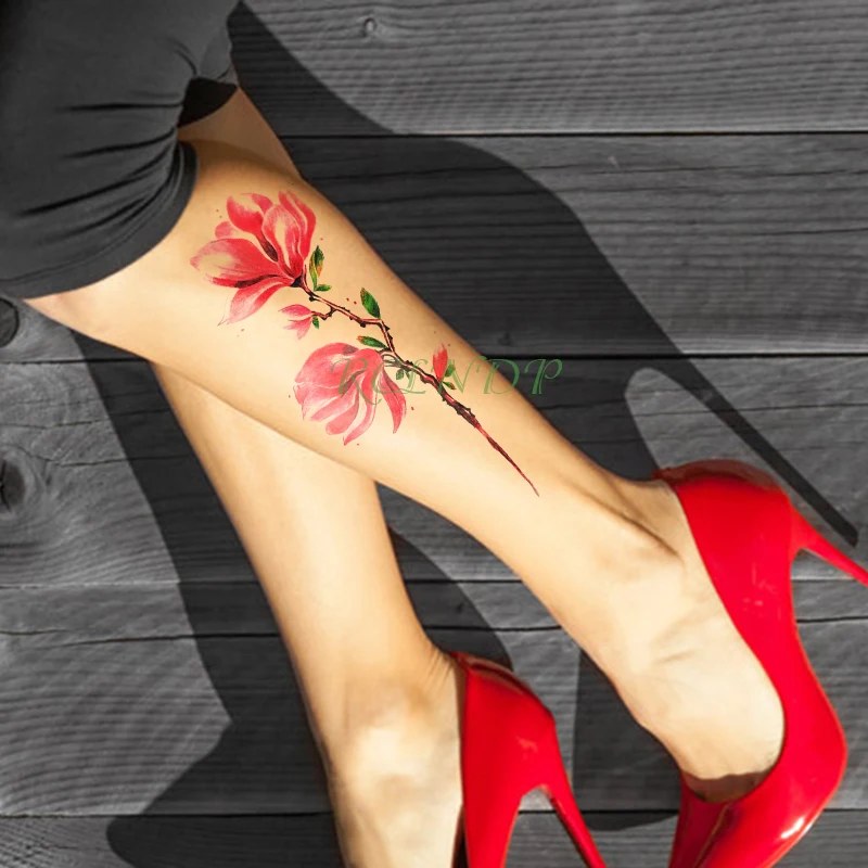 Водостойкая временная татуировка-наклейка, красный цветок, лист, большой размер, художественная татуировка, флэш-тату, поддельные татуировки для девочек, мужчин, женщин