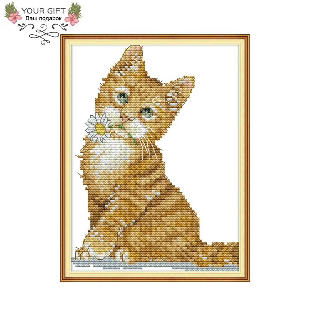 Joy Sunday DA199 14CT 11CT Счетный и штампованный домашний декор Кот кусает цветок рукоделие наборы для вышивки крестом
