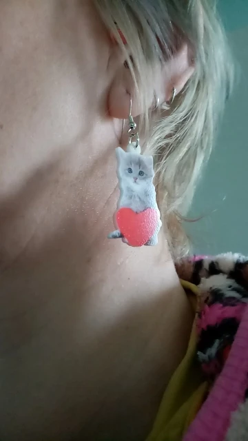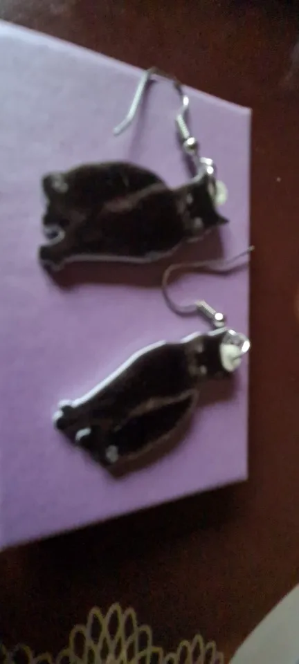 Милые и милые серьги для любителей кошек. У моей дочери две кошки, которые выглядят так же, как кошки в сережках. Она была так рада, когда я дал их ей. Она сказала, что наденет 1 кошечку на правое ухо, а другая-на левое ухо. Серьги прибыли быстро в течение 2 недель.