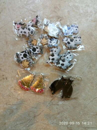 классные сережки,качественные.Товар дошел быстро,сами серёжки пластиковые и разрисованы с двух сторон.У меня есть от этой же фирмы коровки,тоже классные,ношу их с сентября и рисунок в порядке