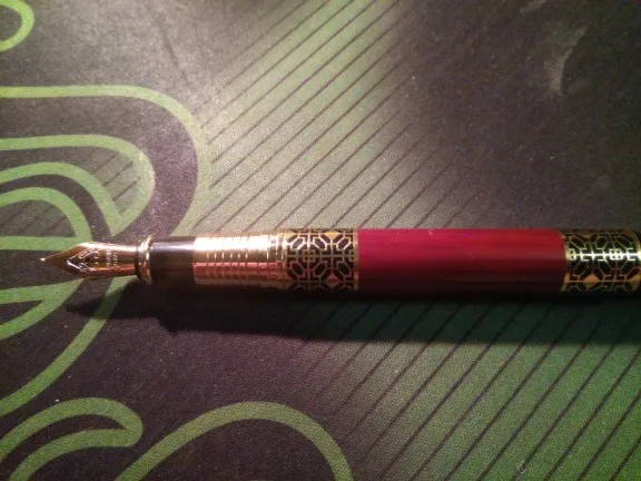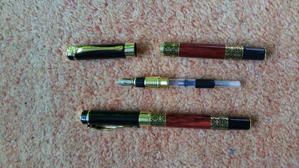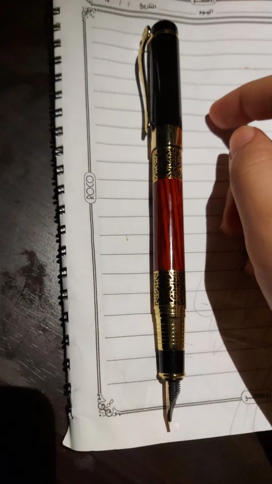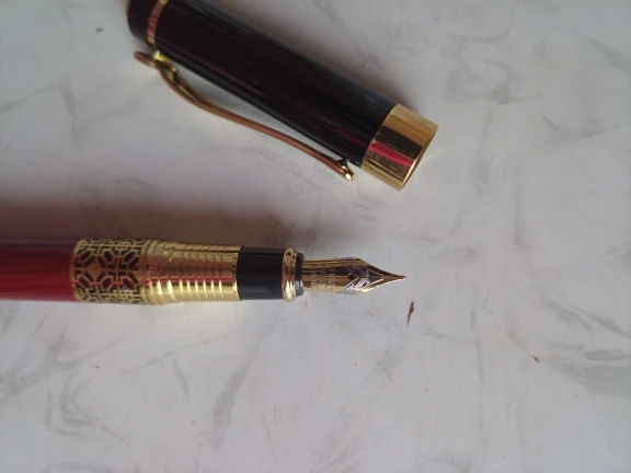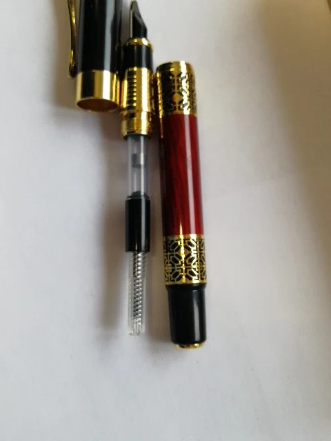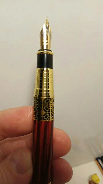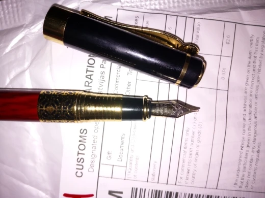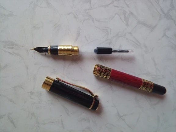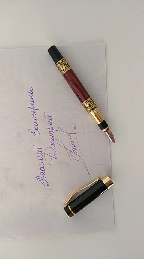 ручка сделана качественно, легко заправлять чернилами. Пишет жирновато, но красиво. Золотистый рисунок со временем сотрётся, но это ожидаемо. В общем можно брать, своих денег точно стоит