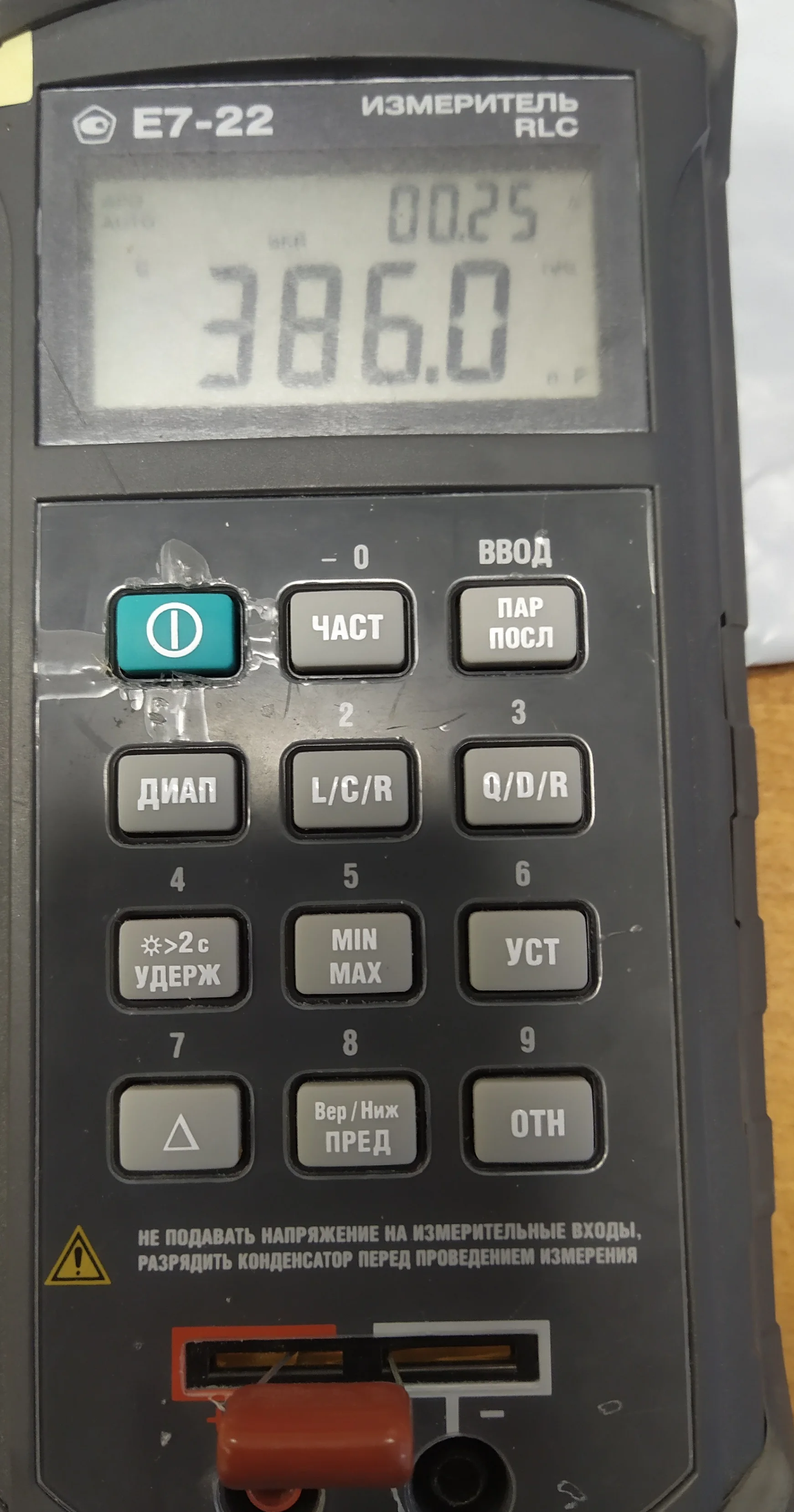 При измерениях на приборе Mega-328 параметры: Capacitance 779 - 815 nF ESR 0.12 - 0.14 Ohm Leakage (Vloss) 0 - 0.1 % На работу под максимальным напряжением не проверял. По параметрам хорошие конденсаторы, только емкость чуть меньше номинала.