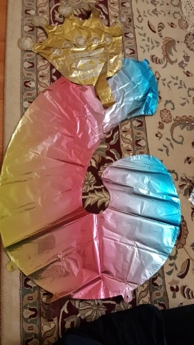 Заказывала шарики на ДР дочери. Отдала надуть гелием, сразу предупредили, что они маленькие и могут не взлететь. Ну и если брак и лопнут, деньги за гель не вернут. Корону отдали, сами надувайте. В итоге единица взлетела, ноль нет. На фото ноль к соседу скотчем примотан. А так смотрятся красиво. Ставлю пять! Ещё сыну тройка лежит заказана. Уже без гелия обойдёмся, так прицепим.
