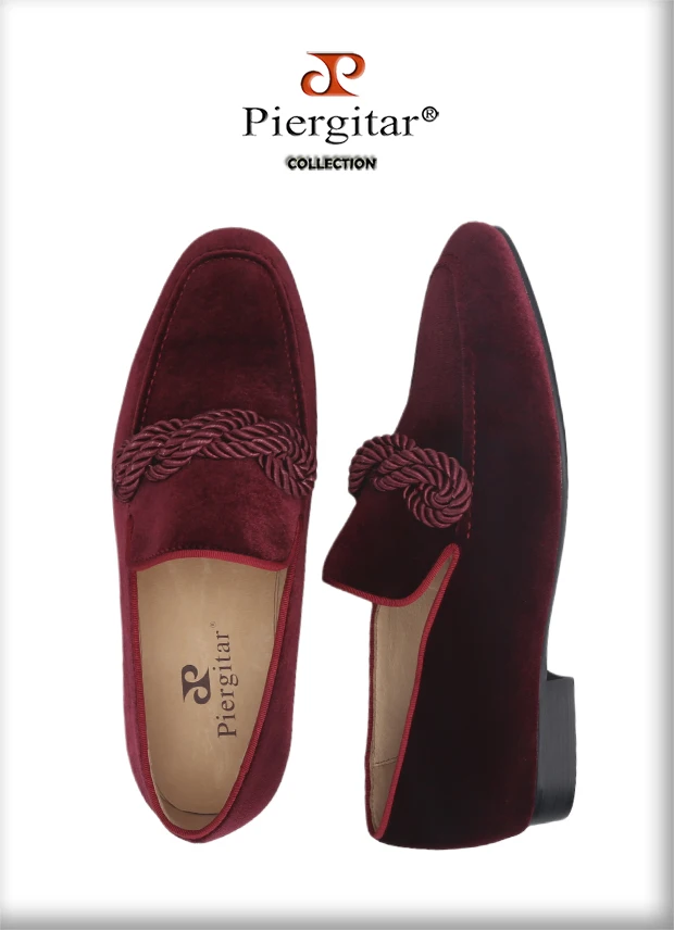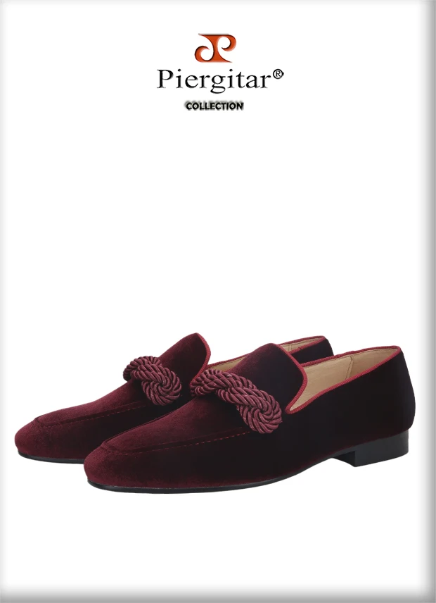 Мужские бархатные туфли Piergitar 2019 темно-красного цвета с банто...