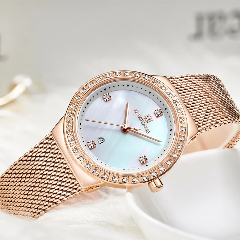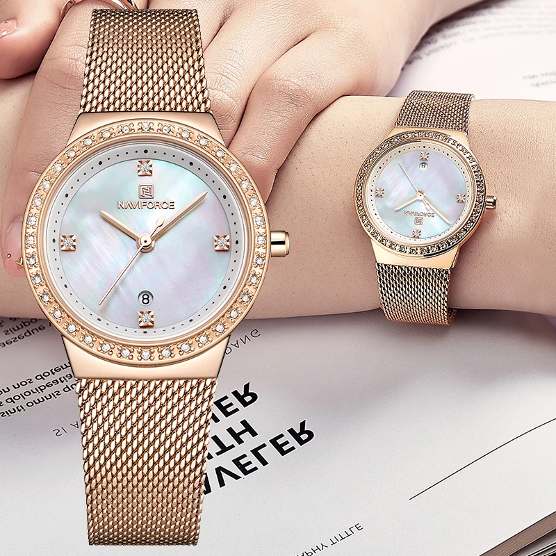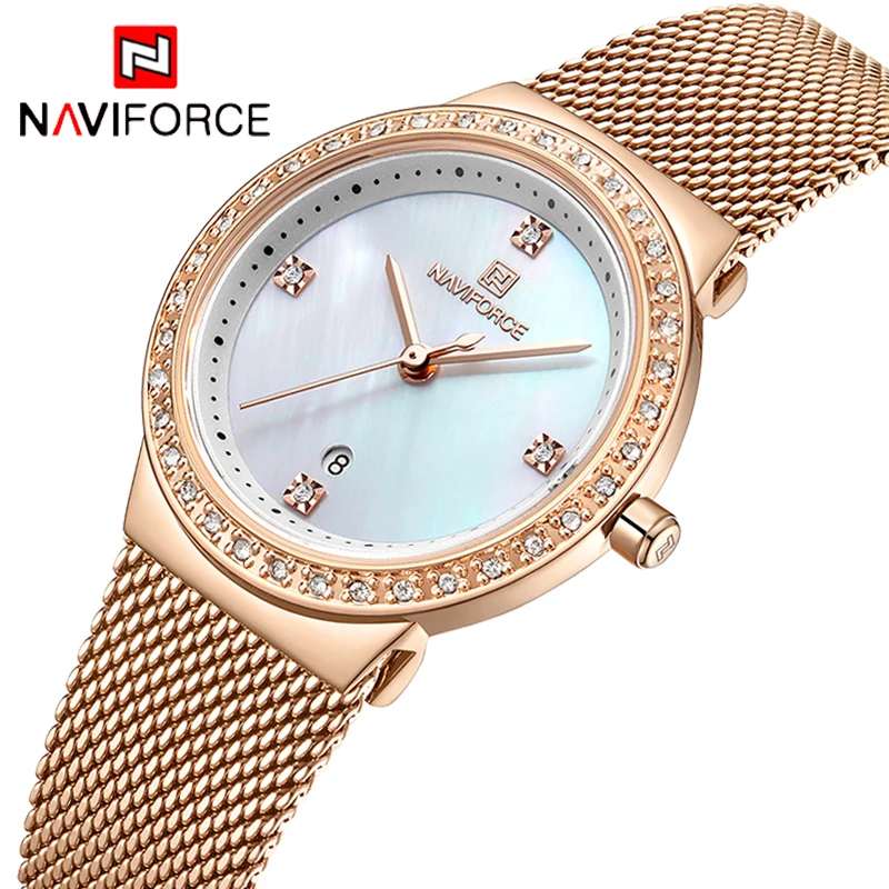 Часы NAVIFORCE женские, кварцевые, водонепроницаемые, из нержавеющей стали