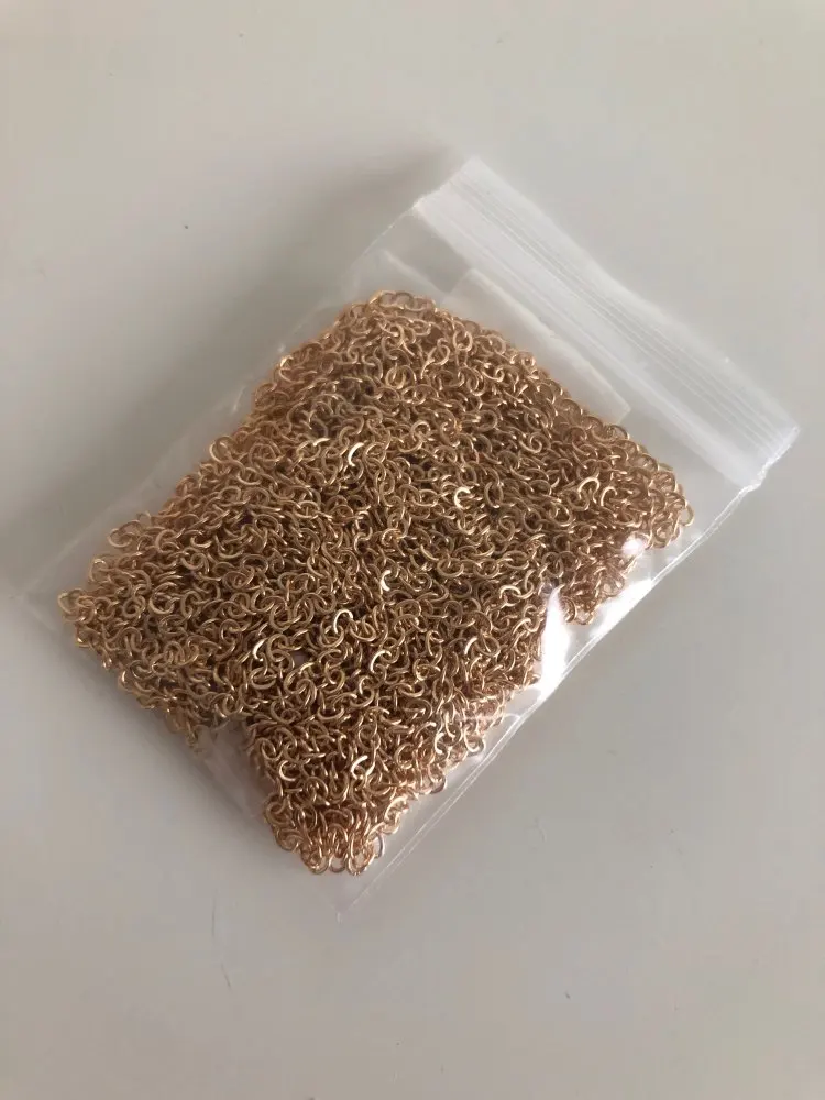Очень красивые цепочки. Аккуратненькие, элегантные. Они не совсем маленькие. Через отверстие цепочек спокойно проходит проволка диаметра 0,6 мм (это толщина проволки любой фурнитуры для украшений). Метраж как и положено: Rhodium – 5.02 м, Gold – 5.2 м, KC Gold – 5.05 м, Red Copper – 5.02 м. Упаковали все хорошо. Доставка более-менее быстрая – в Украину за 3 недели.
