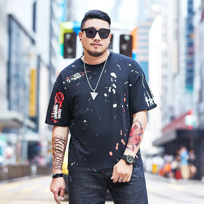 Мужская футболка размера плюс GXXH, летняя повседневная свободная футболка, Мужская Уличная одежда, свободная черная футболка большого размера с принтом для мужчин 83-140 кг