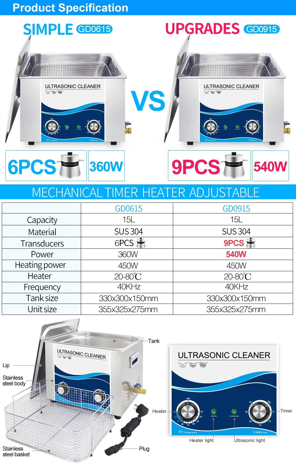 Granbo цифровой ультразвуковой очиститель 15L 0-540W Мощность Регул...