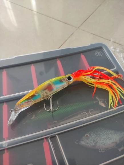 Идеальные отличные цвета, хорошие материалы, правильный вес, я надеюсь, что он хорошо работает под водой, как я надеюсь, он пришел быстро вместе с другими приманками в ближайшее время, или я буду использовать в море, чтобы увидеть, как это работает, я надеюсь поймать много рыб с этим приманка, а также с другими, которые я заказал здесь на Aliexpress