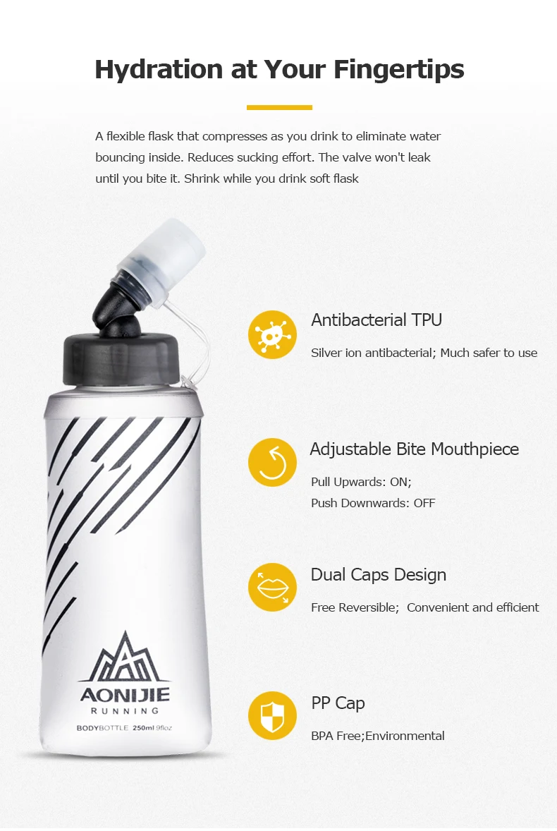 Водяная фляга AONIJIE «сжимается, чтобы пить» ведет себя как жесткая бутылка, но без долбежного эффекта воды и может быть сложена сама по себе, поэтому
