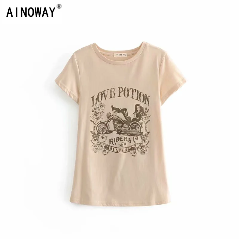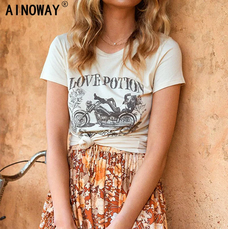 Женская винтажная шикарная футболка в стиле бохо с красивым принтом мотоцикла, женские топы, хлопковая футболка, женская футболка