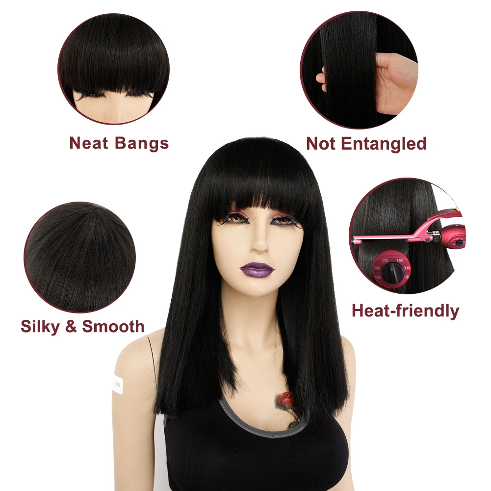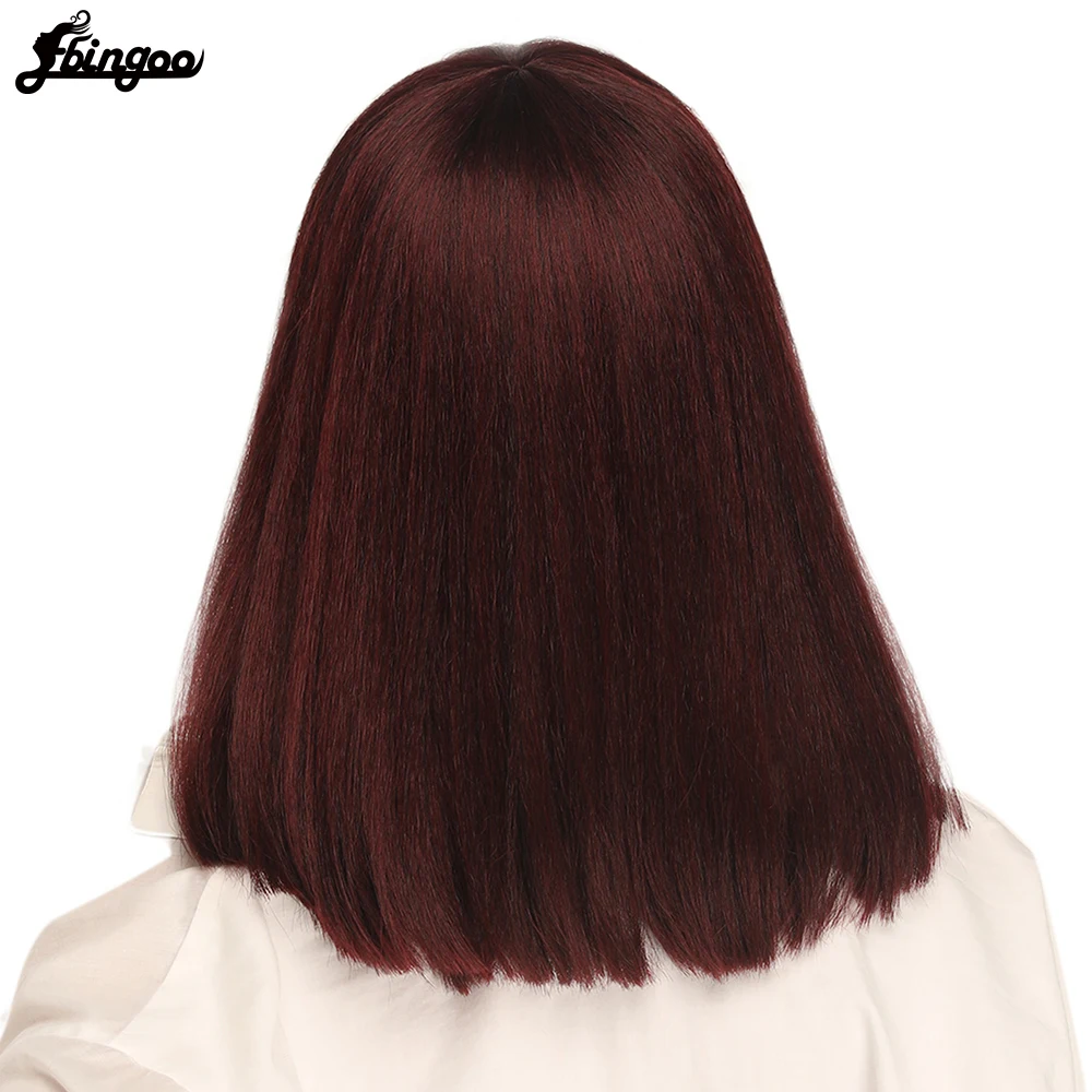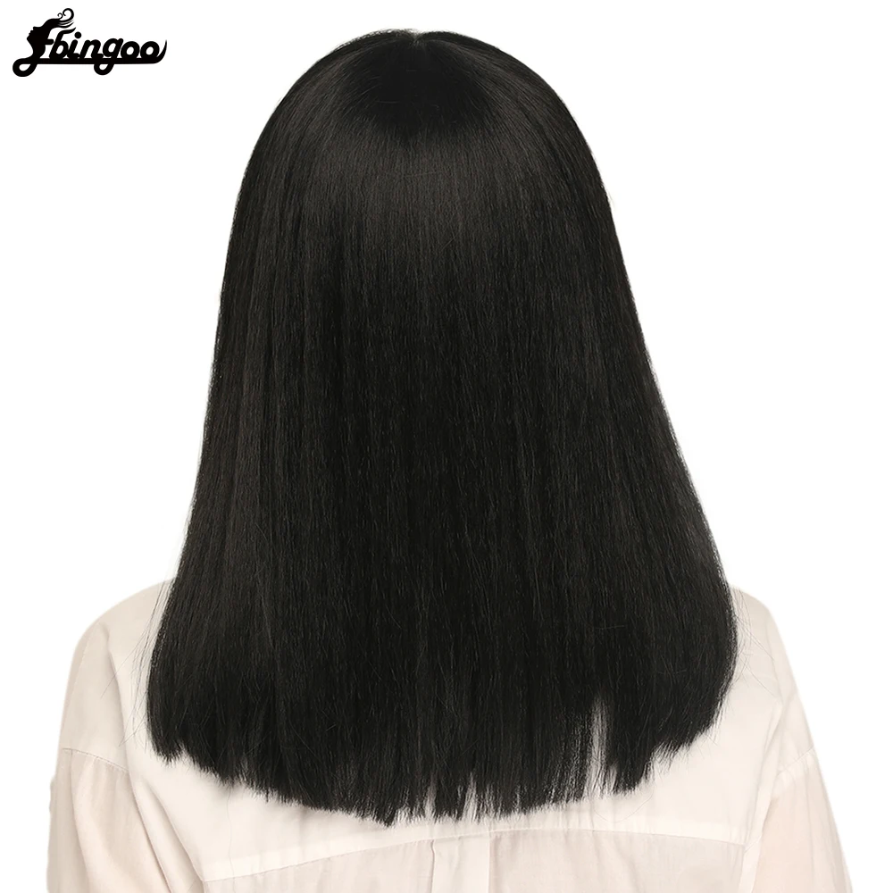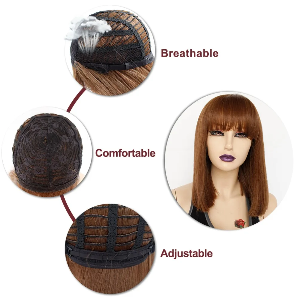 Парики из термостойкого волокна Ebingoo Futura, черный коричневый короткий прямой парик из синтетического волокна с челкой для женщин