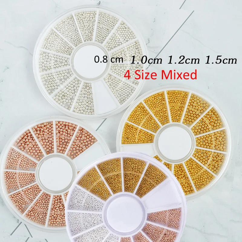 1 коробка розового золота икра бусины0,8-1,5 ммбусины для ногтейногтей микробусинырозовое золото Стразы ногтей смешанный жемчуг, HGHG6766878764