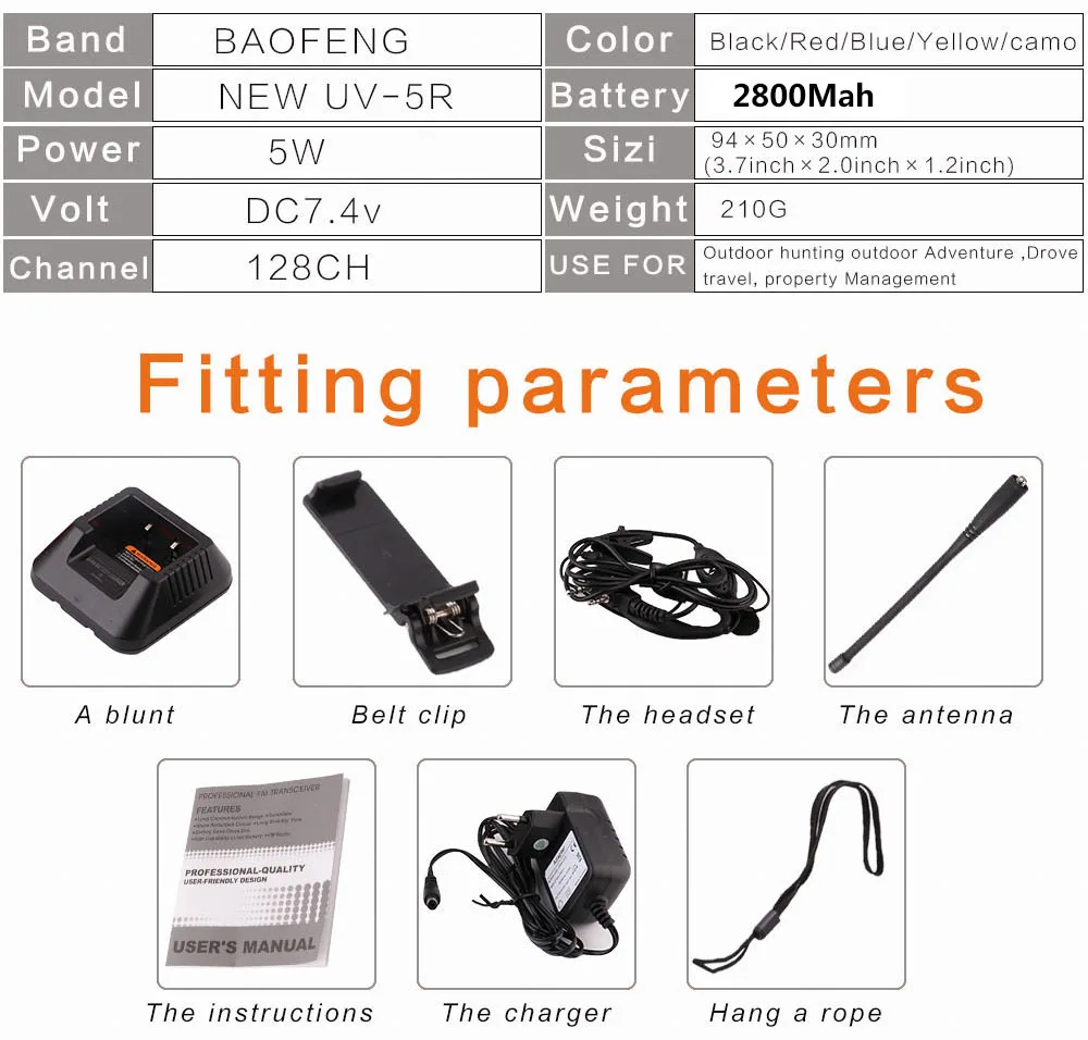 Colorblack, camouflage, red, yellow, blue, radio vhf uhf dual band