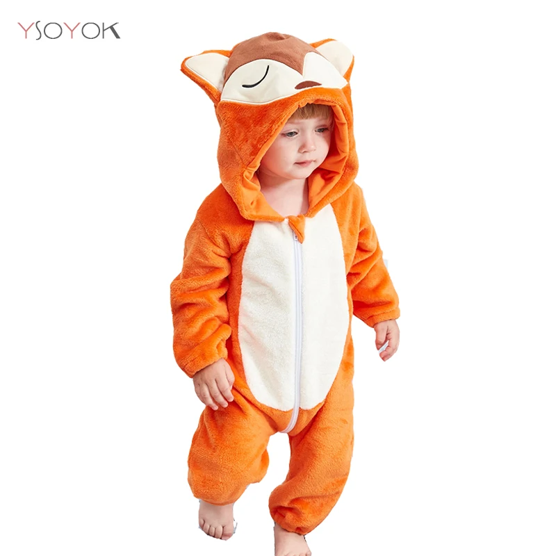 Детский комбинезон для новорожденных, одежда для маленьких девочек, зимний комбинезон для мальчиков, костюм для малышей, комбинезон для малышей, пижама в виде панды, тигра, лисы, Детская Пижама