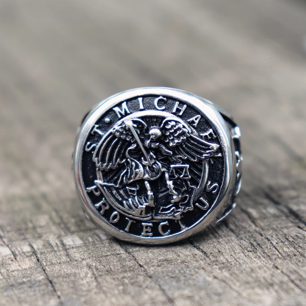 Мужские кольца с изображением архангела, из нержавеющей стали
