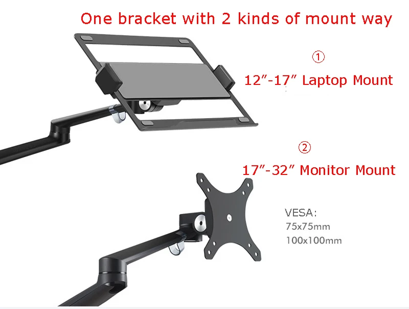 Алюминиевый кронштейн 2 в 1 для ноутбука 12-17 дюймов + держатель для монитора 17-32 дюйма, Настольный кронштейн с газовой стойкой, нагрузка 8 кг, OZ-1S