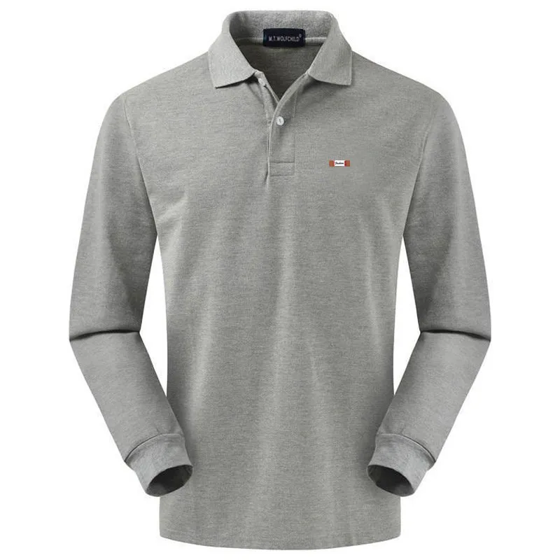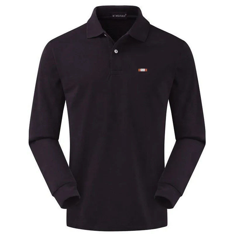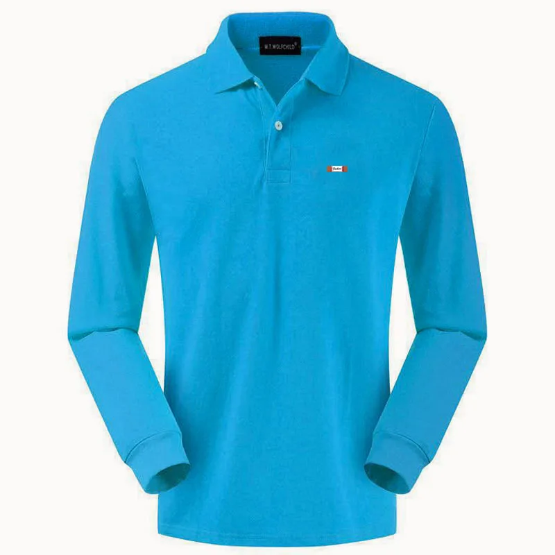 Рубашка-поло мужская с длинным рукавом, 100% хлопок, Повседневная модная Однотонная рубашка-поло, осень 2020