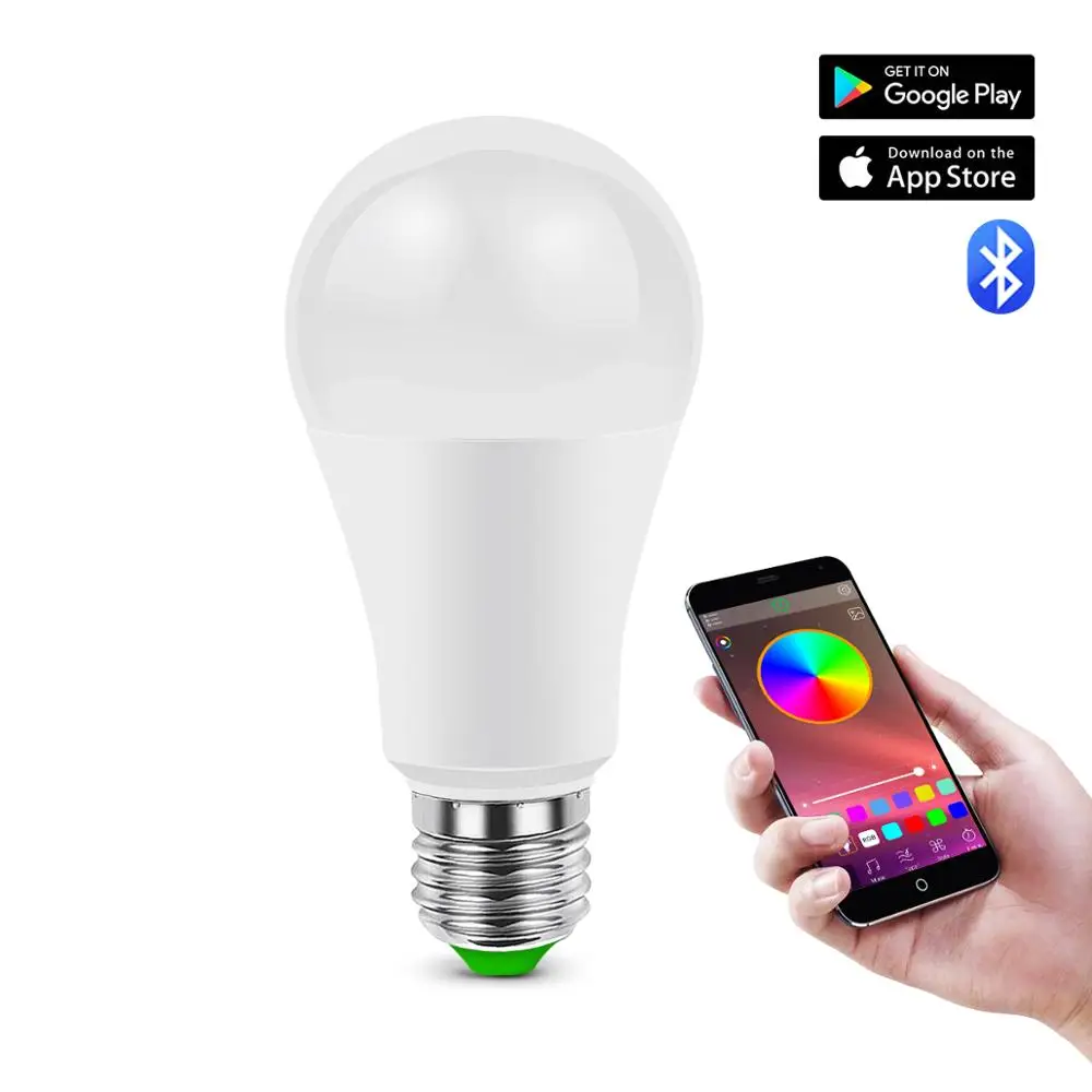 Беспроводная приглушаемая светодиодная RGB-лампа для ночного освещения, 5 Вт, 10 Вт, 15 Вт, стандартная лампа с поддержкой Bluetooth 4,0 и приложением или ИК-пультом дистанционного управления, домашнее освещение