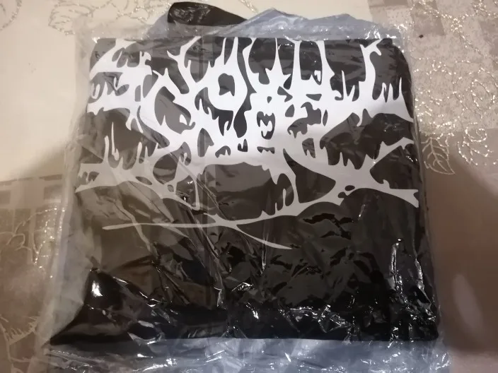 Все отлично - ткань хорошая,принт яркий (жаль без пентаграммы,как в оригинальном лого), посылка отслеживалась,шла 3 недели.На свой девчачий S заказывала M-ку, то ,что надо для лёгкого оверсайз,как я и хотела.Спасибо).