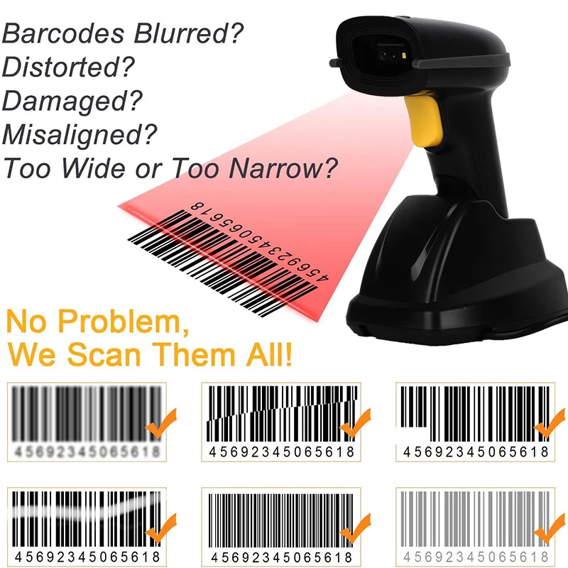 Беспроводной сканер штрих-кодов портативный карманный 1D2D QR 2,4G Лазерный CCD Bluetooth считыватель штрих-кодов PDF417 для инвентаризации терминала POS