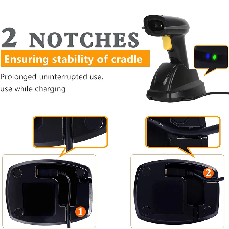 -- 1.【Charger/стенд/приемник 3-в-1 Cradle】: 1. Колыбель дома 2,4 ГГц беспроводной приемник. После подключения к компьютеру через usb-кабель устройство готово к работе. 2. Работает по мере зарядки. Когда сканер находится в колыбели, зарядка автоматически запускается. Колыбель удваивается как стойка сканера для работы без рук.-- 2.【Always powered】: внутренний аккумулятор 2200 мАч для длительного времени работы в режиме ожидания. Сидя в колыбели, сканер может работать непрерывно.Кнопка/Непрерывный режим: кнопка пускового механизма для сканирования в режиме кнопки. Установите сканер в непрерывном режиме и управляйте без рук со сканером, сидящим в колыбели.3. 【Быстро точные показания скорость】: 32 бит Процессор; Наивысшее декодирования любой велосипедной поездке. Можно распознать следующие коды: UPC/EAN, с дополнительным UPC/EAN, Code128, Code39, код 39, Полный ASCII, Coda bar, промышленный/Interleaved 2 из 5 Code93, MSI, Code11, ISBN, ISSN, Почта Китая, и т. Д. (Дополнительно) GS1 Databar,Code32; 2D: qr-код, матрица данных, PDF417, код ацтеков, Maxicode и т. Д.-- 4.【 IP54 ударопрочность: может выдержать падение с высоты до 6,6 футов. Технический IP54 крепкий, который защищает беспроводной сканер штрих-кода от пыли и влаги.
