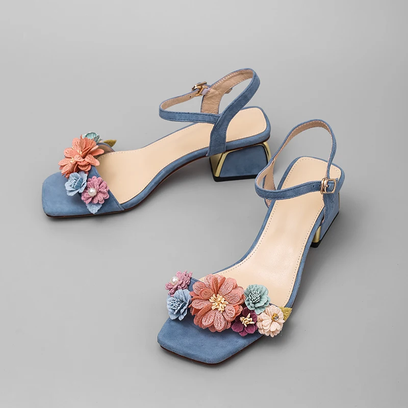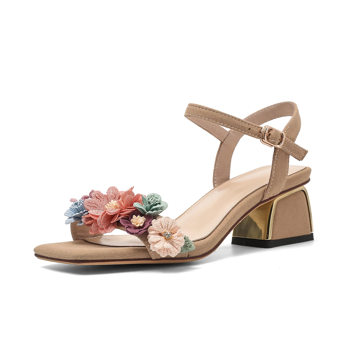 2019 г. Летние босоножки из натуральной кожи на высоком каблуке с цветами женские босоножки с ремешком на щиколотке повседневная обувь для офиса женская обувь размер 34-42