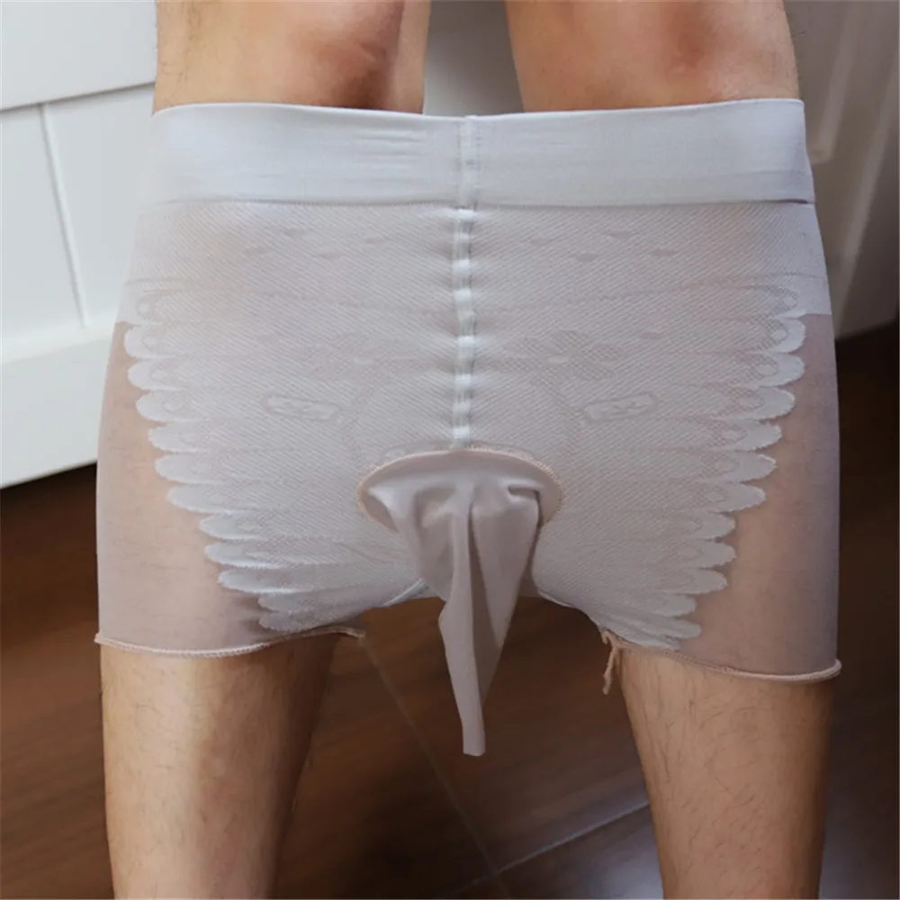 Ультратонкие сексуальные мужские боксеры UNWE, эротические чулки, нижнее белье, мужские чулки с бабочкой, с промежностью, сексуальное нижнее белье для геев