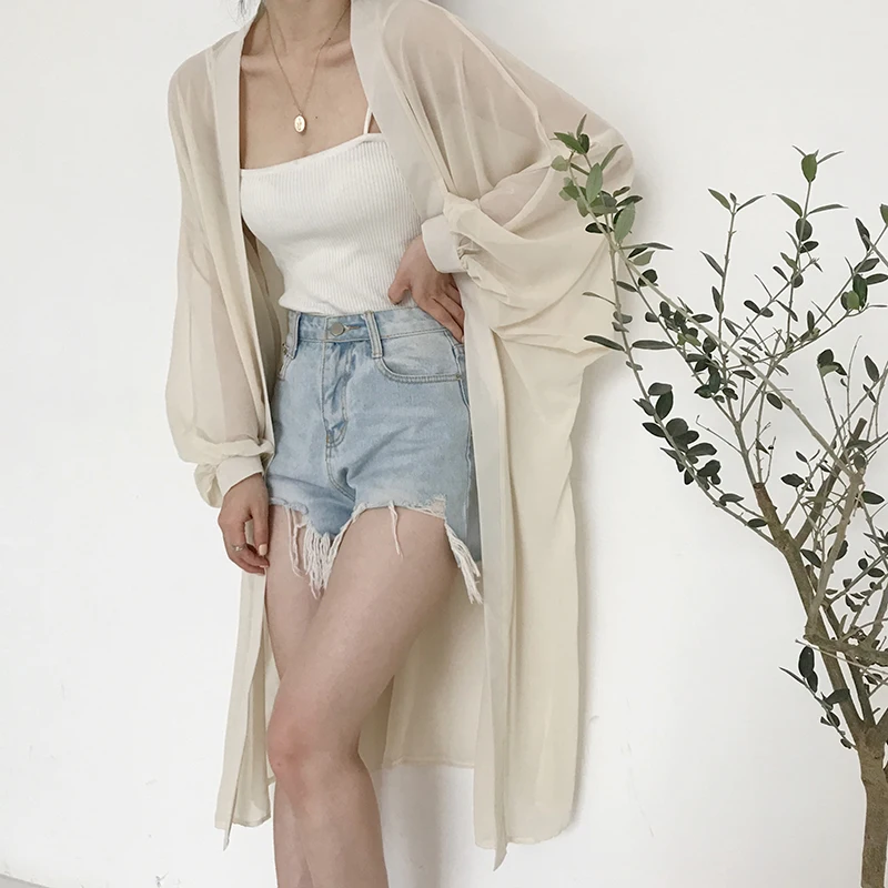 Шифоновый кардиган-кимоно для женщин, пляжный кардиган с длинным рукавом, белая рубашка размера плюс, винтажная одежда, женская одежда, 2020