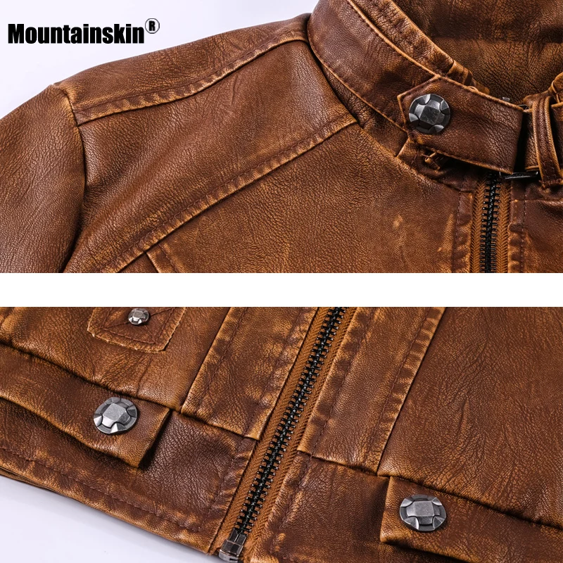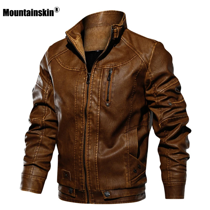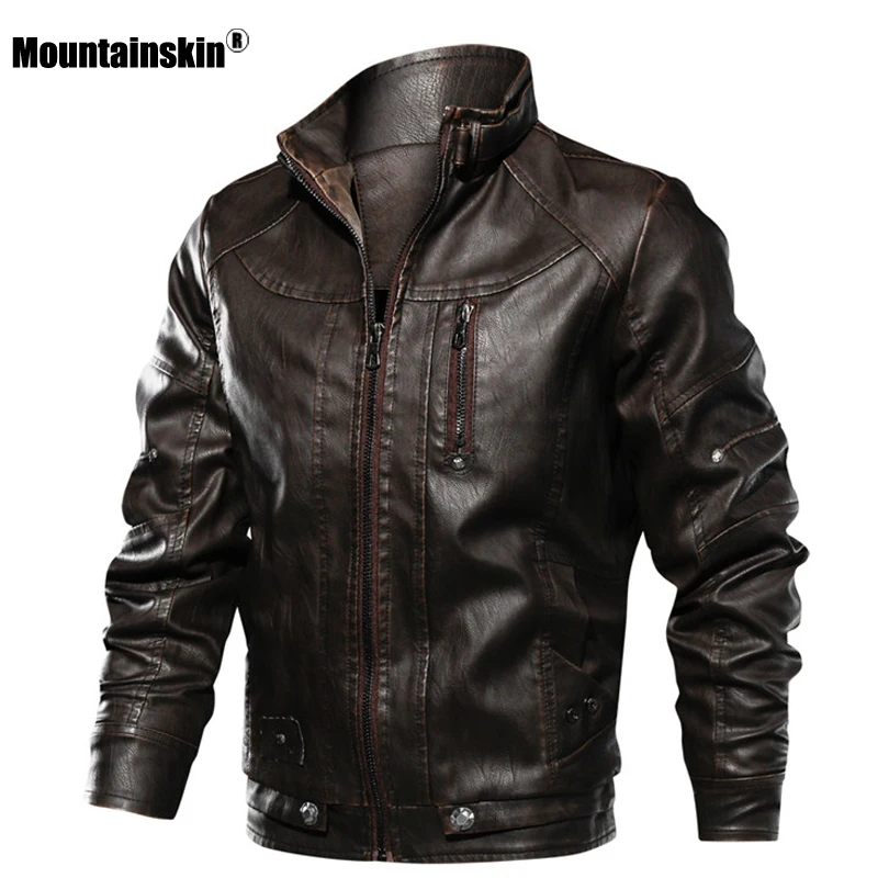 Мужская куртка из искусственной кожи Mountainskin, мотоциклетная ветровка, приталенная, верхняя одежда, SA672