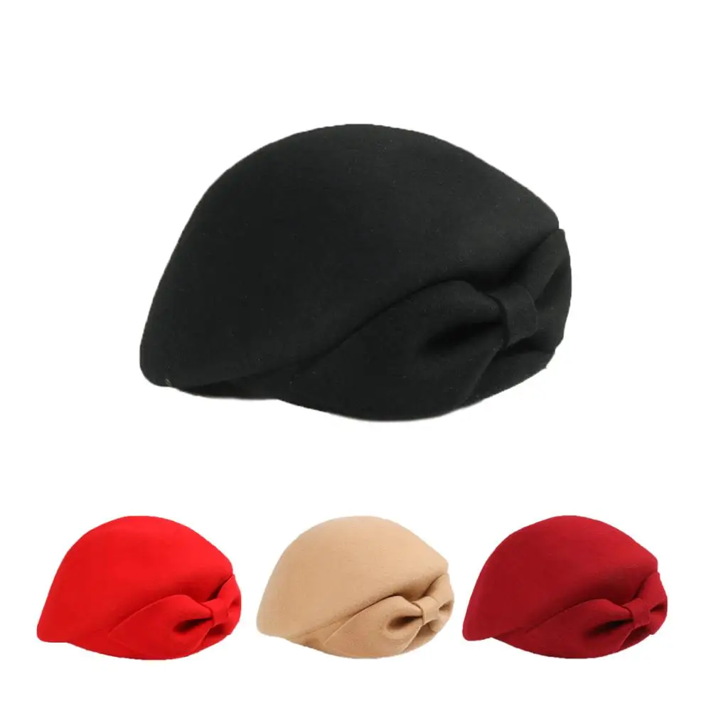 Женская фетровая шляпка-Таблетка, винтажная шляпка красного цвета из 2019 шерсти, зимняя шляпка с бантом, 100%