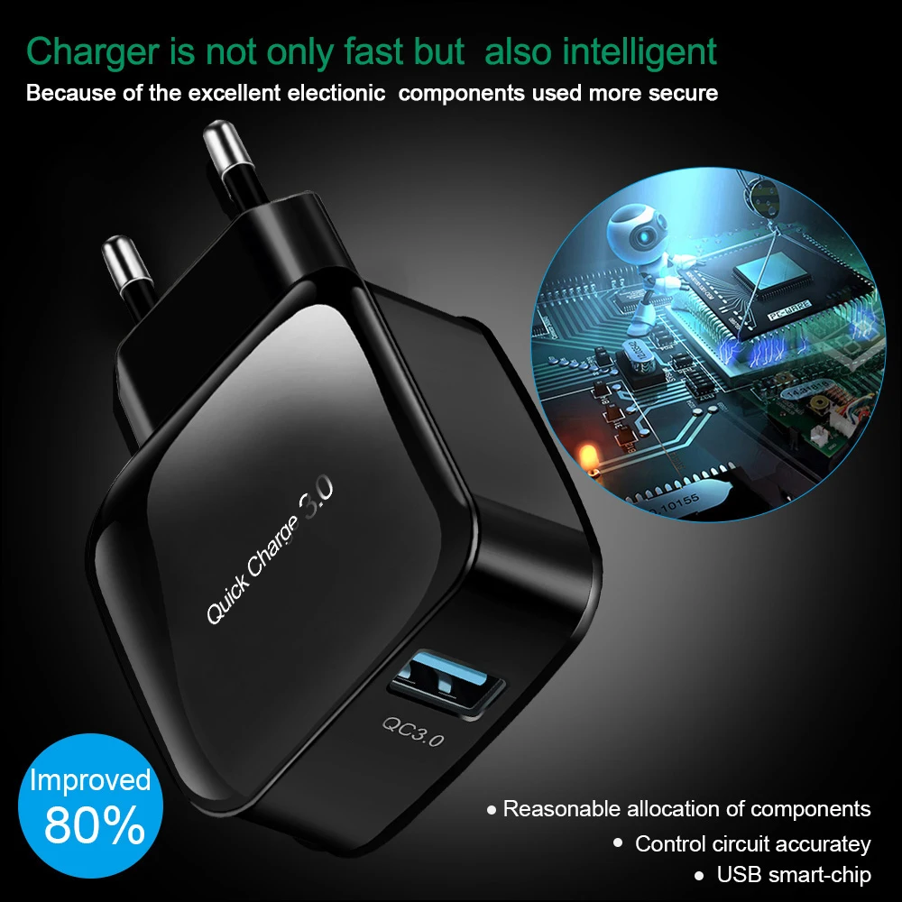 Зарядное устройство USB 18 Вт, быстрая зарядка QC 3,0, настенное за...