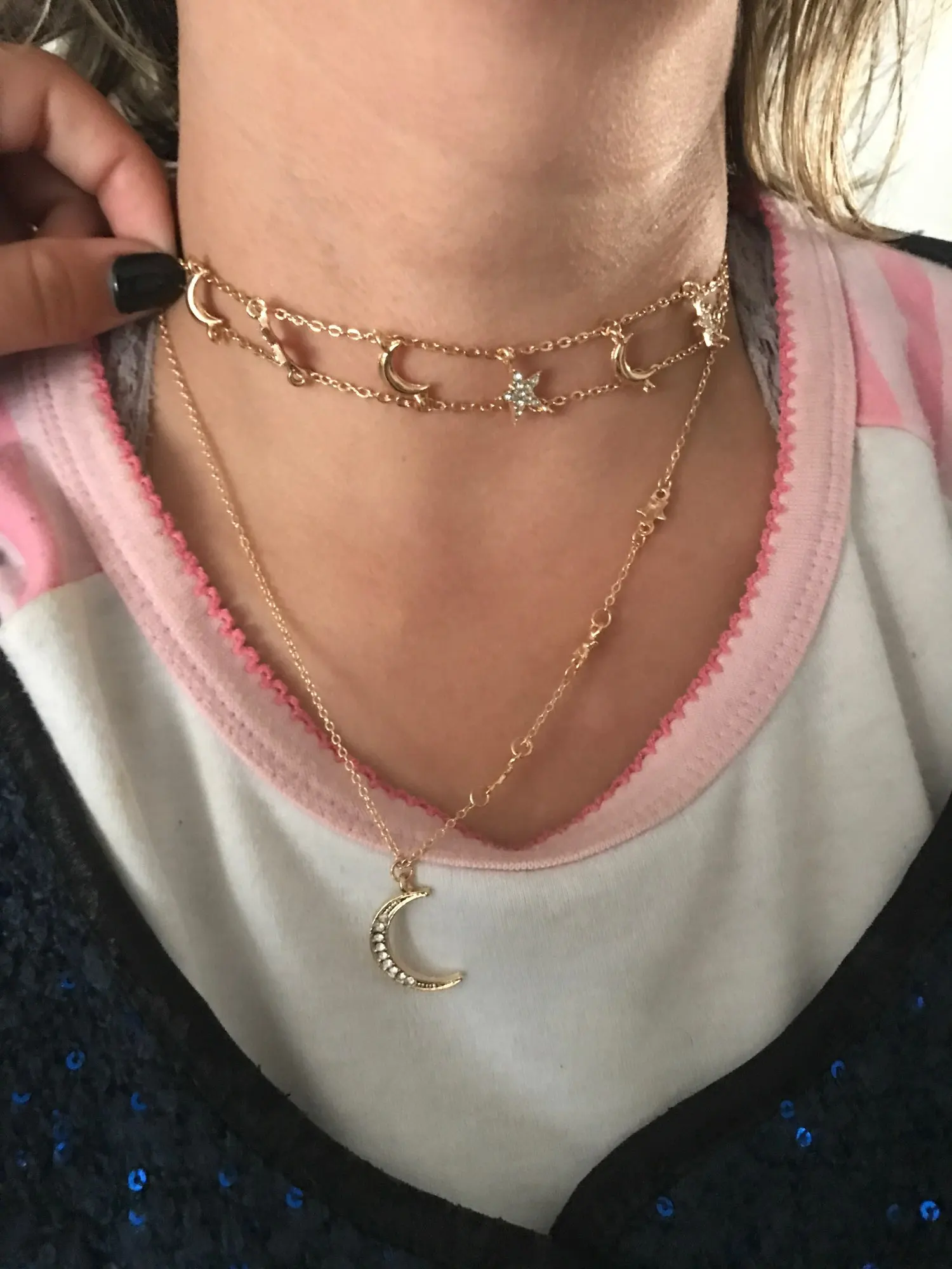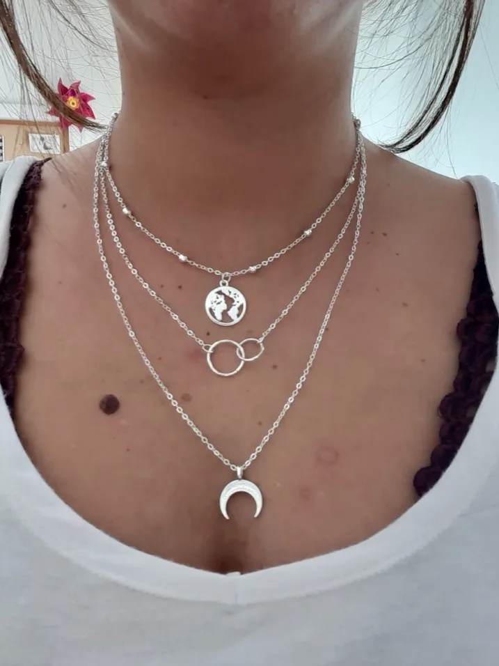 El collar es una cosa en la foto y en la realidad, otra. Parece más bien un collar tipo vintage más apagado y me ha llegado algo muy "brillante", la cadena es más ancha y es horroroso.