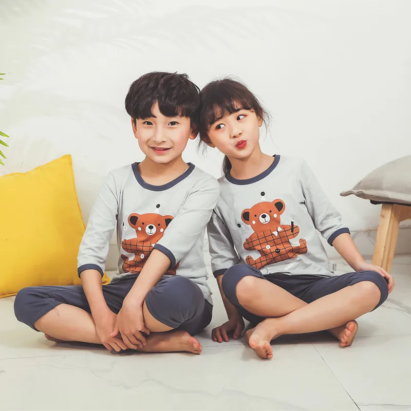 Комплект детской пижамы, хлопковая футболка с коротким рукавом и штаны
