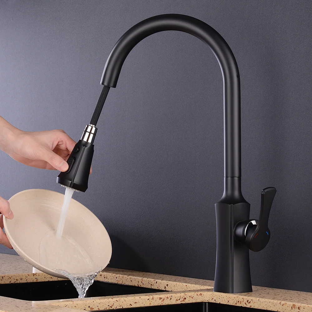 Простота в эксплуатации--- Одна ручка дизайн интегрировать для контроля температуры воды и объема потока легко, Высокая дуга360 градусовПоворотный носик поставляет полный спектр доступа к стирке, обновленная механическая система втягивания сделать потяните вниз распылитель головка всегда сидеть в первоначальном месте после использования
