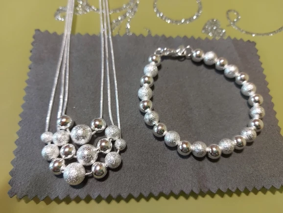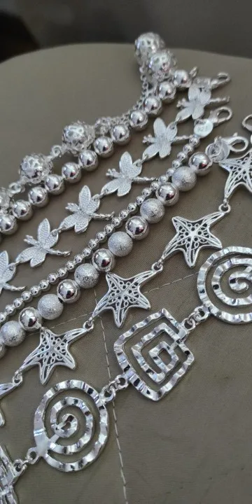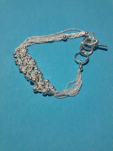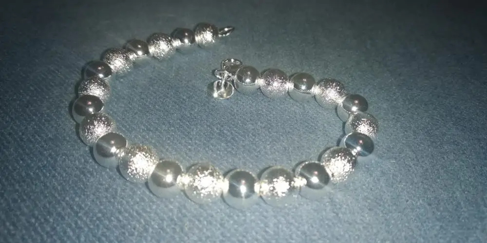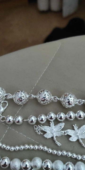 Заказывала за 63 рубля.В целом норм.Бусины нанизаны на какую-то леску, либо толстую нитку с вкраплением серебристых ниток или какой-то фольги...не знаю.Доставка - около месяца до Челябинской области.Но это потому что много посылок объединили в одну,поэтому трек отслеживался, и посылка пришла на почту.Если бы заказывала только браслет,то скорее шло бы дольше и кинули бы в почтовый ящик, а возможно бы и не дошло.Носила пару дней,уже то ли начало облезать,то ли покоылось плёнкой какой-то мутной..не знаю,как объяснить.Уже не сверкает,как новенький.Думаю,что быстро облезет.Не мочите.Снимайте сразу,как приходите домой.Так дольше прослужит.За 63 рубля,думаю,сойдёт.Что ещё можно ожидать за такой прайс.Явно не серебро,хоть на бляшке у застёжке и стоит клеймо 925.