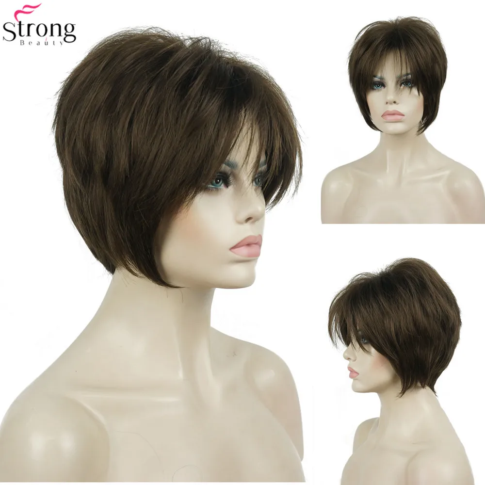 StrongBeauty синтетический парик, женские коричневыесветлые волосы, натуральный парик, короткие прямые парики