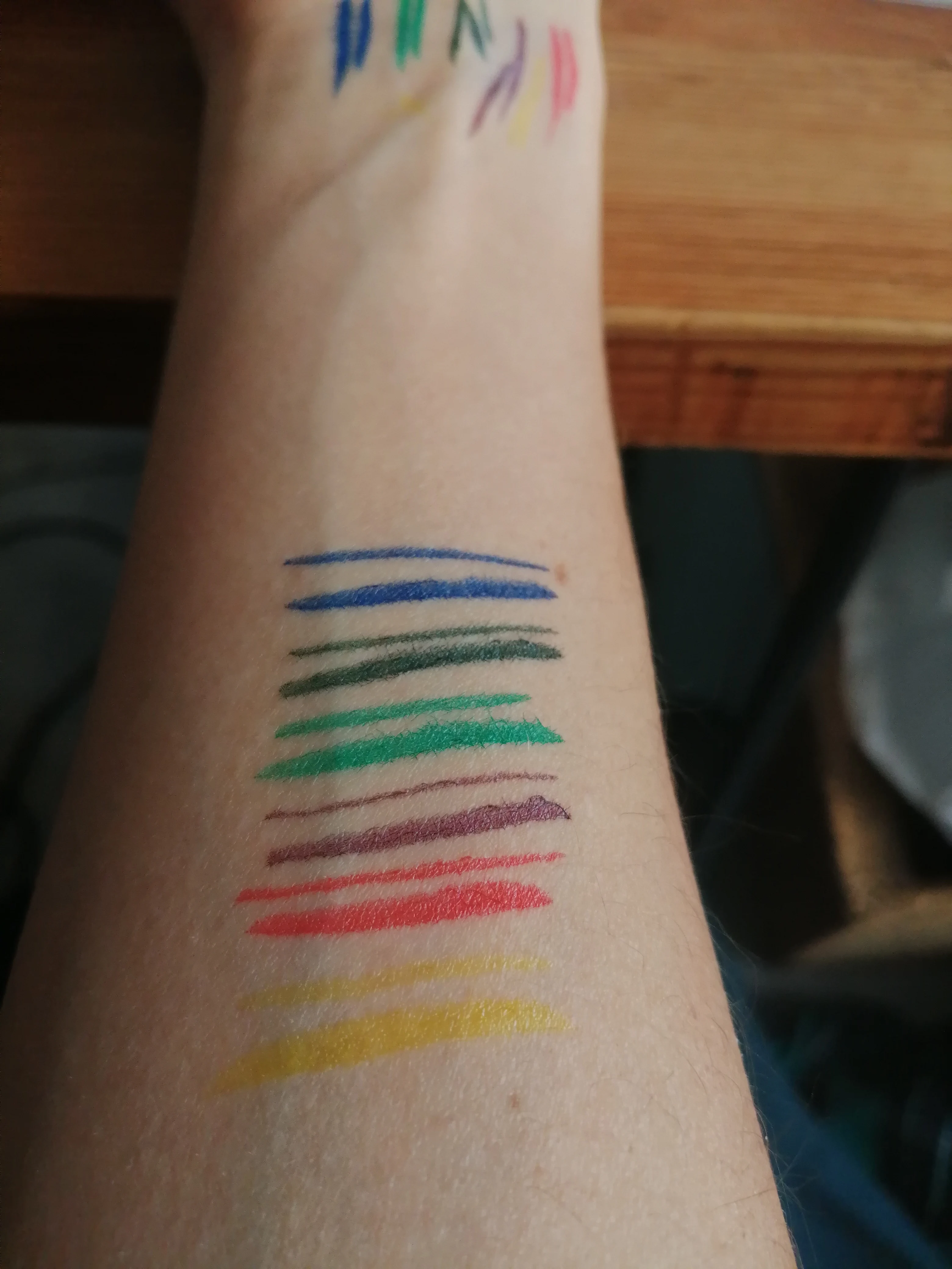 Купил несколько цветов, и они довольно хорошие! Они могут быть немного слишком водяными, но затем снова, за цену, это определенно стоит того! Цвета хорошие, простые в использовании! Я новичок, когда дело доходит до красочного внешнего вида, так что это идеально :) более темные цвета, так что имейте это в виду! На картинке я ношу темно-зеленый, и он светится весь день без проблем!