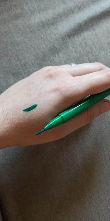хорошая подводка, наносится как фломастер, не трескается когда высохнет, смывается легко, но если потереть. если просто вода попала на глаза, то не смоется так быстро. оттенок как на фото. если специально не стереть, то держится весь день. до Уфы шла очень долго (больше 2 месяцев) но продавец не виноват, поэтому ставлю 5 звезд