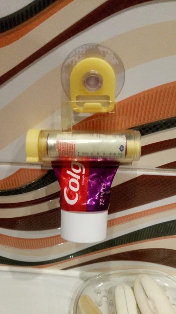 Штука неплохая, но присоска вообще не держит даже маленький тюбик, использую только чтобы поддавливать пасту к носику