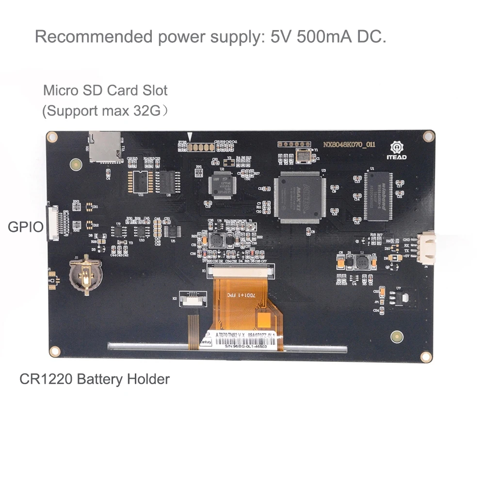 Nextion усовершенствованная NX8048K070_011R представляет собой мощный 7,0 "HMI на тонкопленочных транзисторах на тонкоплёночных транзисторах резистивный экран дисплея с красивым enlcosure, с 32 Мб памяти флэш-памяти, 1024 байта EEPROM, 8192 байт Оперативная память, и GPIO поддерживается. По сравнению с основными дисплеями Nextion, улучшенные добавили некоторые новые функции, такие как: Поддержка встроенного RTC, Поддержка сохранения данных на флэш-память, поддержка GPIO, большая флэш-память емкостных и больших ЦП-часов.