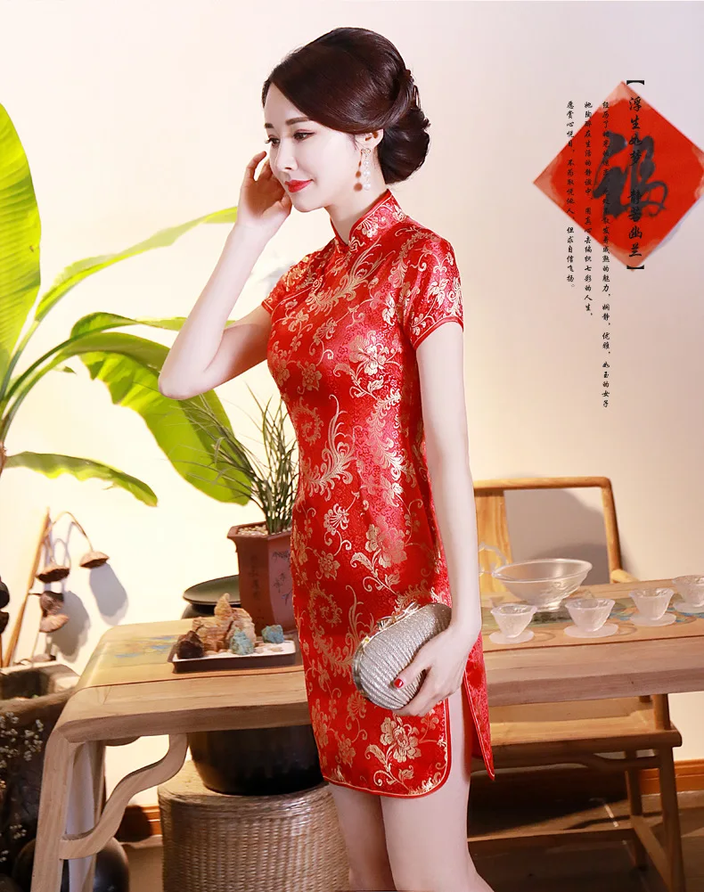Женское традиционное мини-платье Ципао с воротником «Мандарин», летнее платье Ципао с цветочным принтом в стиле ретро, облегающее платье Ципао, уникальные вечерние платья
