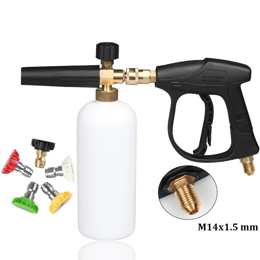 Автомойка высокого давления M14 x 1,5 мм, пеногенератор, 14 дюйма, с 5 насадками, для автомобиля пистолет для очистки воды