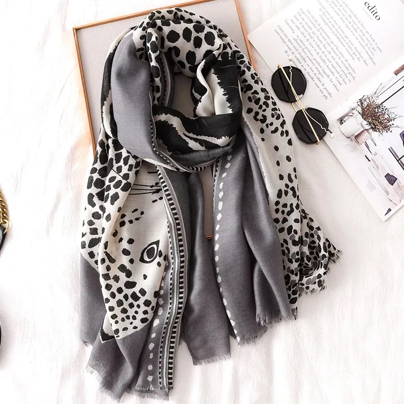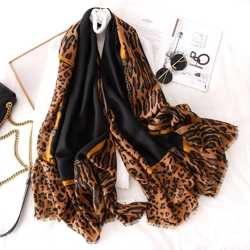 Роскошный брендовый зимний шарф, Леопардовый женский шарф, мягкие п...