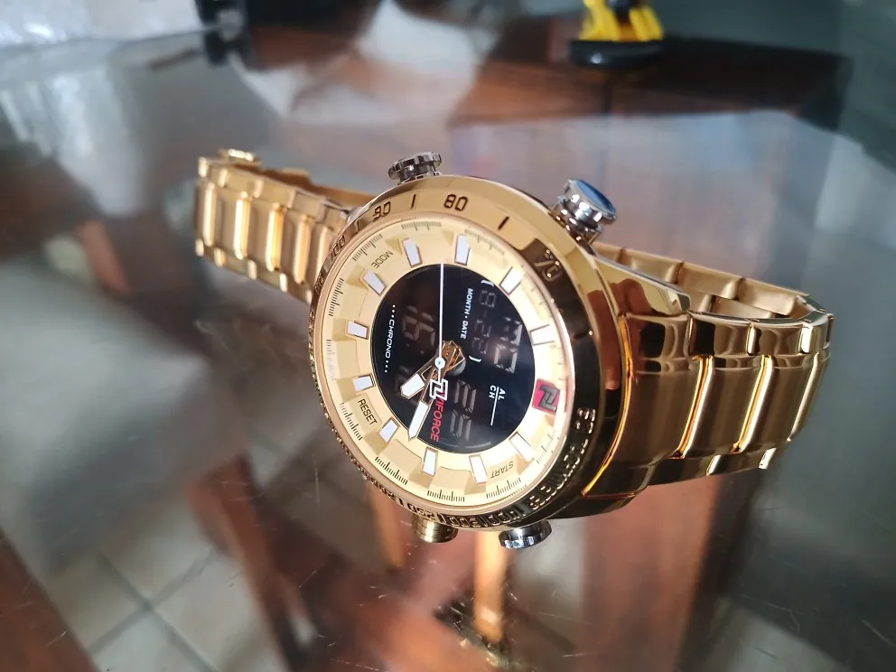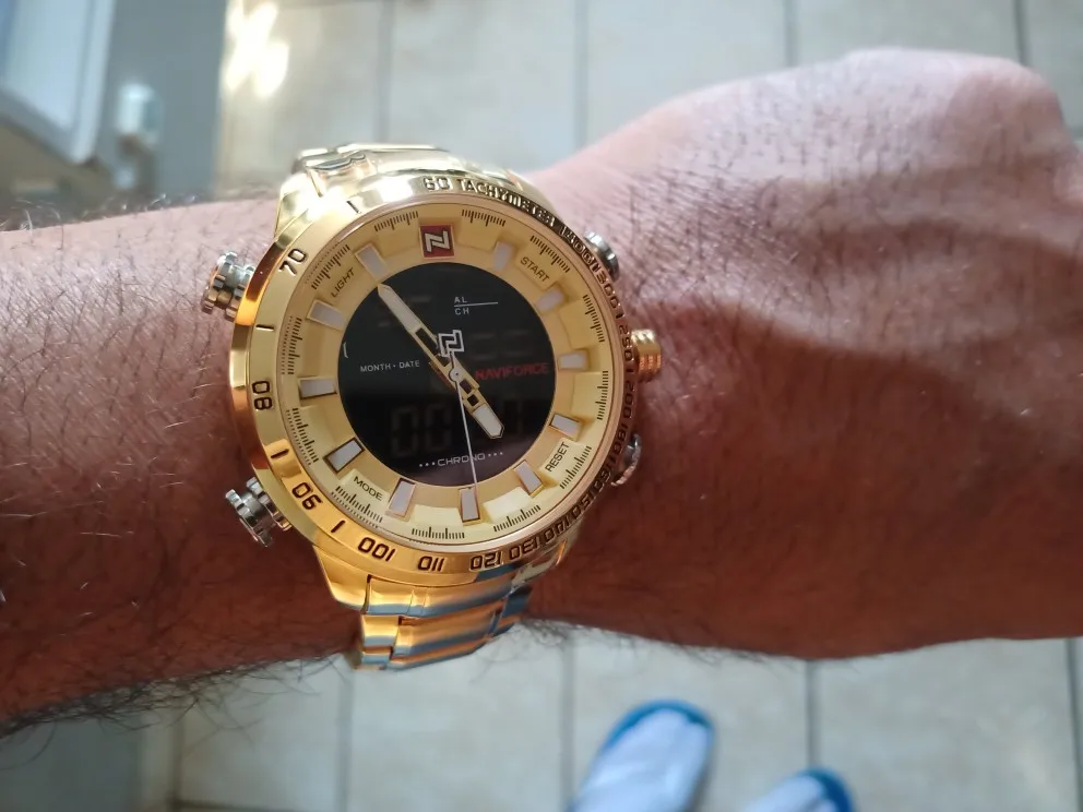 Часы наручные NAVIFORCE мужские Кварцевые водонепроницаемые, роскошные золотистые светодиодный цифровые в стиле милитари, со стальным ремешком