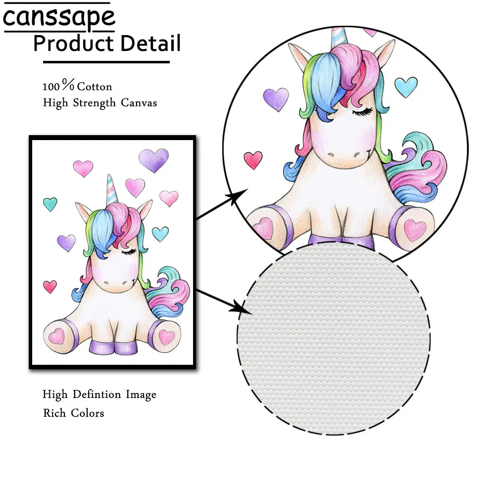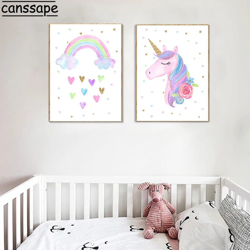 Картина на холсте с единорогом, постеры для детской комнаты, радуга, сердце, настенный художественный постер для ребенка, настенные картины в скандинавском стиле для декора комнаты для девочки