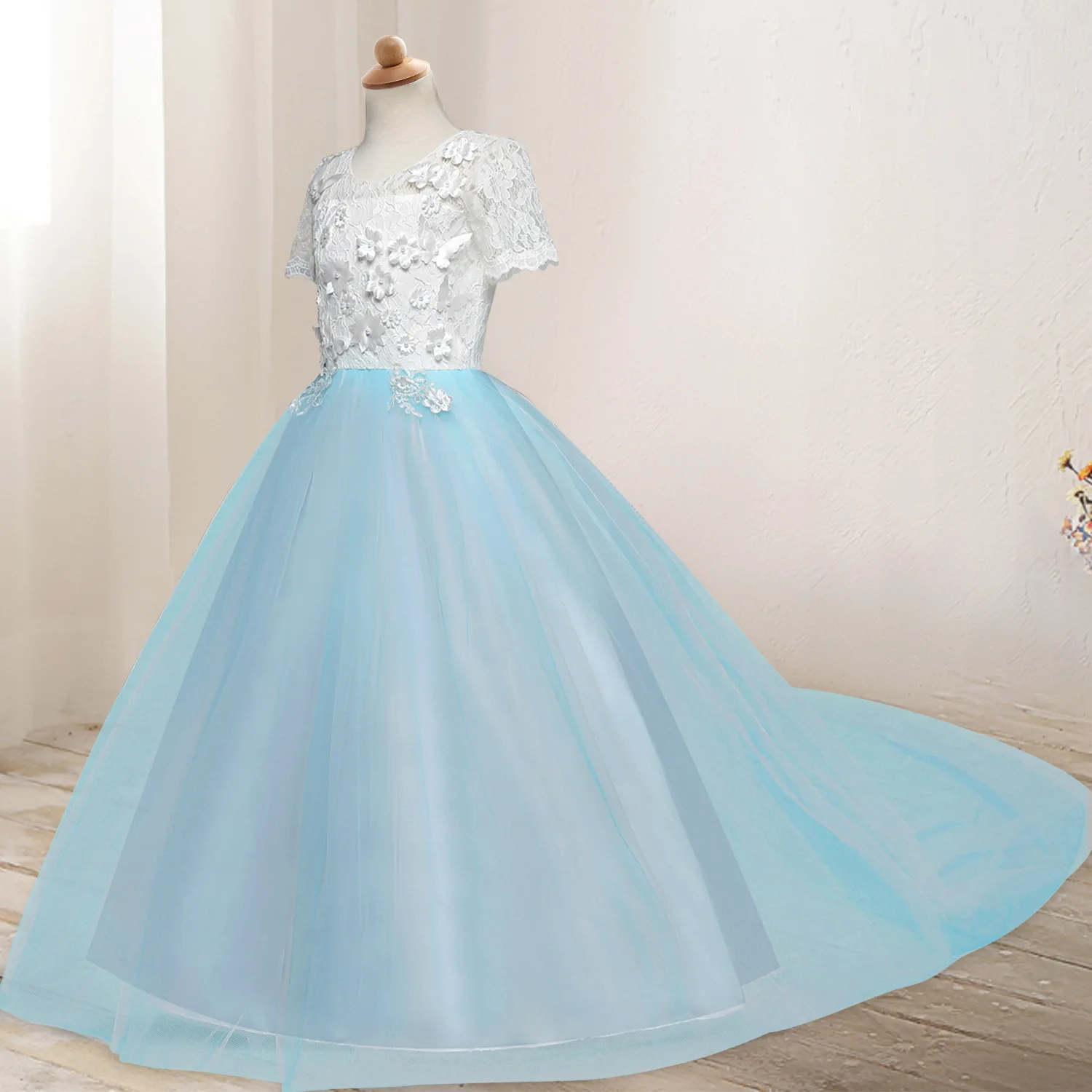 Детвечерние вечернее платье для девочек, длинное Тюлевое платье с цветочным рисунком для свадьбы, платье принцессы для девочек, платье