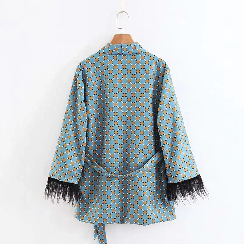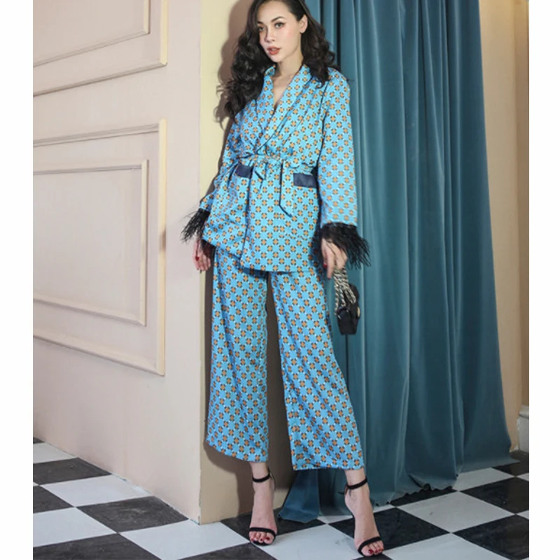 Женский костюм 2019 Осень Новая мода Женская Повседневная печать кисточка украшения длинный Костюмный пиджак свободные широкие брюки из двух частей